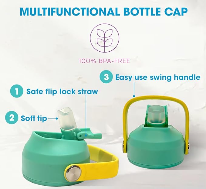 • Convenient Portability: Our kid-friendly water bottle boasts a 12oz capacity and a robust swivel handle attached to the lid, perfect for children with petite hands. But that's not all – we also include an additional bottle strap for added convenience. Whether it's slung over the shoulder, hooked onto a backpack, or carried by hand, our versatile design ensures effortless hydration for your child on any occasion – be it outings, school days, sports activities, or exciting adventures.