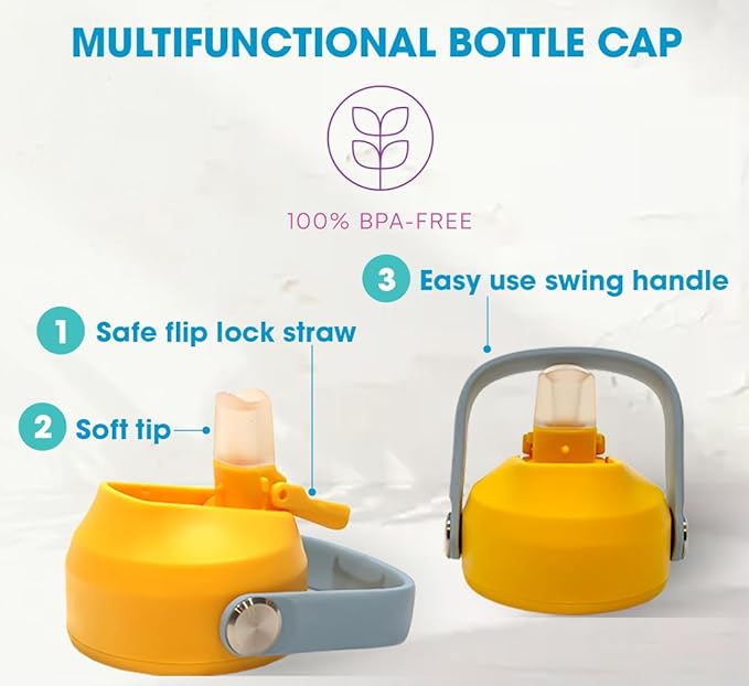 • High Quality Assurance: Say goodbye to concerns about safety! Our Kids Water Bottle with Straw is meticulously crafted from 18/8 stainless steel, ensuring a 100% non-toxic and odorless drinking experience. Both the lid and straw are crafted from BPA-free, non-toxic materials, prioritizing your child's health and well-being. Plus, the thoughtful design of the straw prevents any potential harm from ice, ensuring a safe and worry-free hydration experience for your little one.