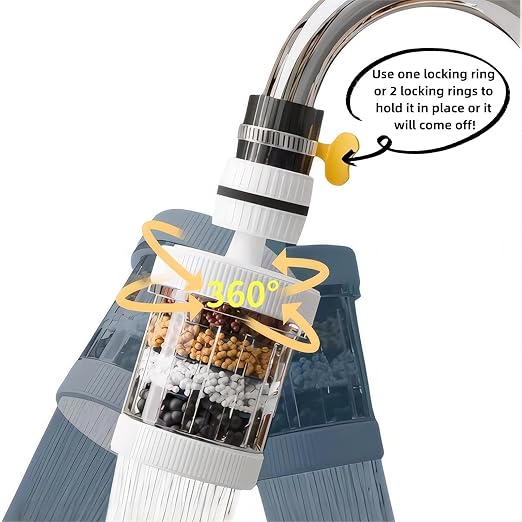 • APPLICATION FUNCTION: The kitchen faucet water filter can be rotated 360°, easy to install and can be rotated in multiple angles. The faucet water filter can effectively increase water pressure, powerful rinsing and prevent splashing.