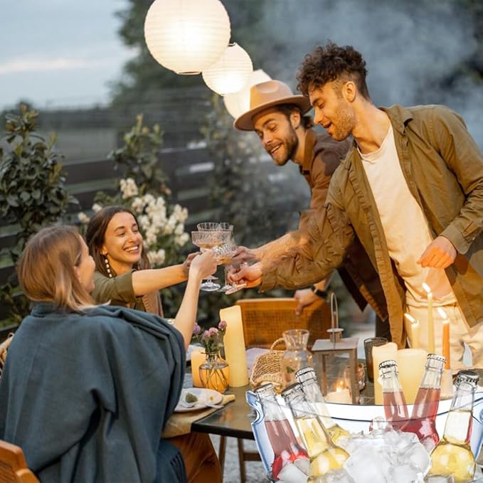 • Premium Quality & Enhanced Durability: Crafted from premium quality,thickened acrylic material, our beer bucket is built to last.The built-in handle provides easy portability, while the sturdy construction prevents leaks of water or ice.Helping to maintain the cool temperature of ice and beverages for longer periods. This feature ensures that your drinks stay chilled and refreshing, enhancing the overall drinking experience for your guests.