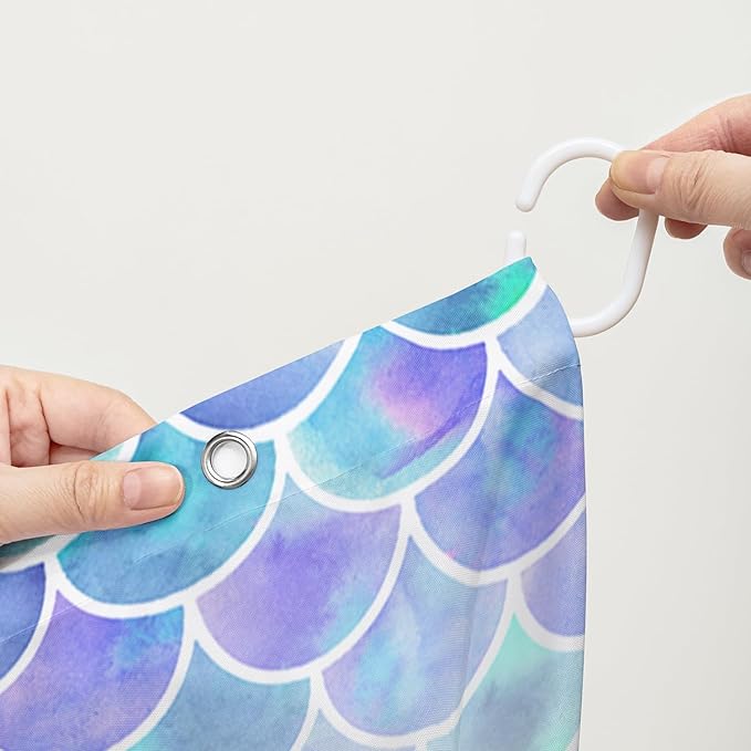 AILONEN Mermaid Shower Curtain,Watercolor Whale and Mermaid Bath Curtain,Beautiful Mermaid Princess Shower Curtain Ocean Fish Scale Print Curtain Waterproof with 12 Plastic Hooks, 60" W*72" H