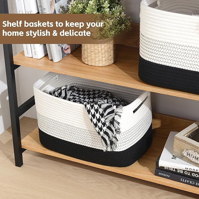 • Multifunctional Storage Basket: 15" x 10" x 8" shelf basket for organizing, large capacity. These retangular basket are designed to fit perfectly on living room, bedroom, bathroom, baby room, office to store household items