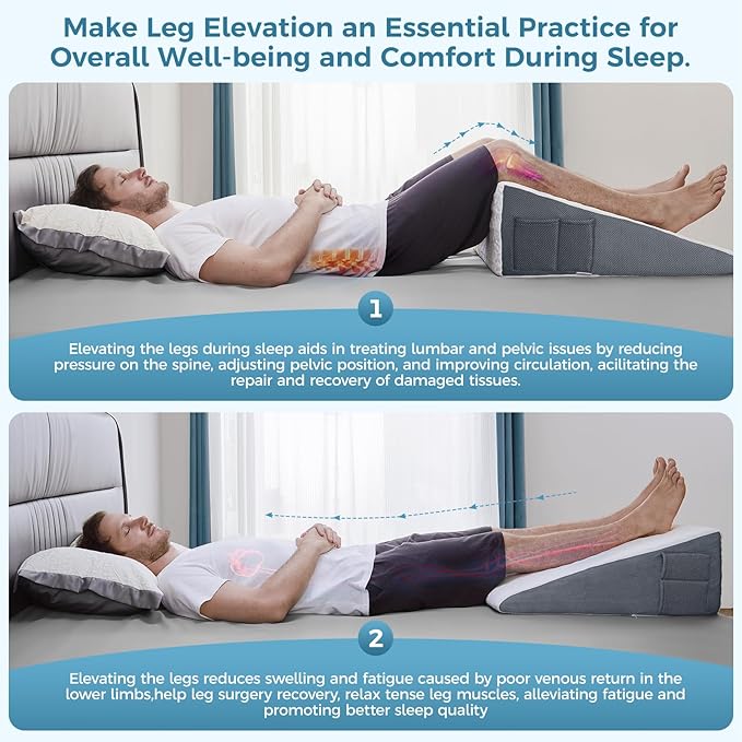 • 【Versatile Use Bed Wedge for Your Health】Innovative wedge pillows are expertly designed based on Fowler’s position theory and extensive nursing research. This versatile pillow is the perfect size for elevating the body, making it ideal for post-surgery recovery, acid reflux, GERD, snoring, breathing issues, back pain relief, and leg swelling. Experience tailored support and relief with this carefully crafted wedge pillow