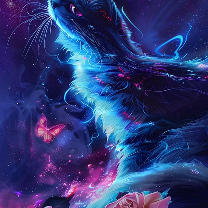 AILONEN 3D Rose Cat Shower Curtain Set, Beautiful Kitten with Butterfly Shower Curtain Liner for Kids Boys Girls,Boho Galaxy Shower Curtain for Bathroom,36" W*72" H