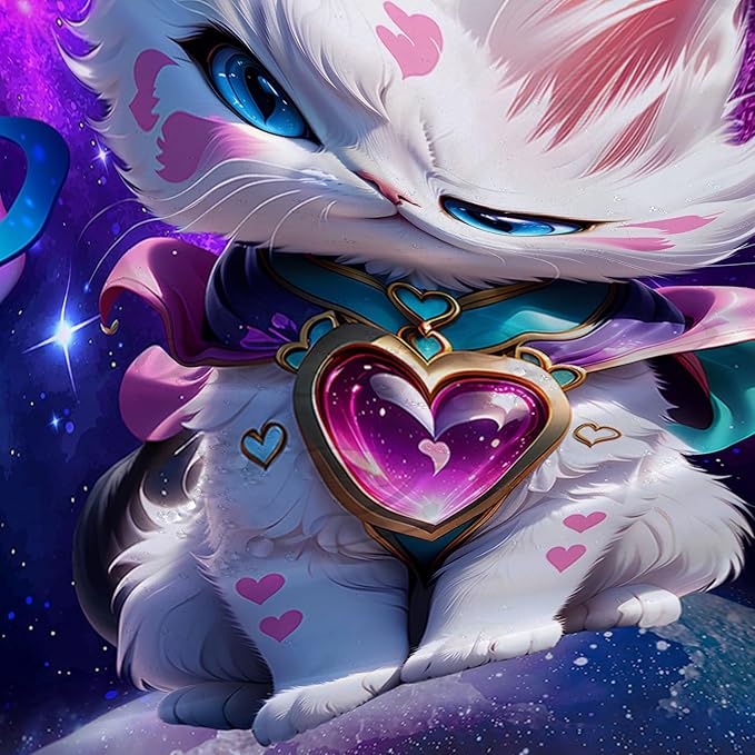 AILONEN Cartoon Cat Shower Curtain Set for Kids Boys Girls, Kawaii Love Kitten Shower Curtain for Bathroom,Galaxy Planet Washable Fabric Shower Curtain with Hooks,72" W*96" H