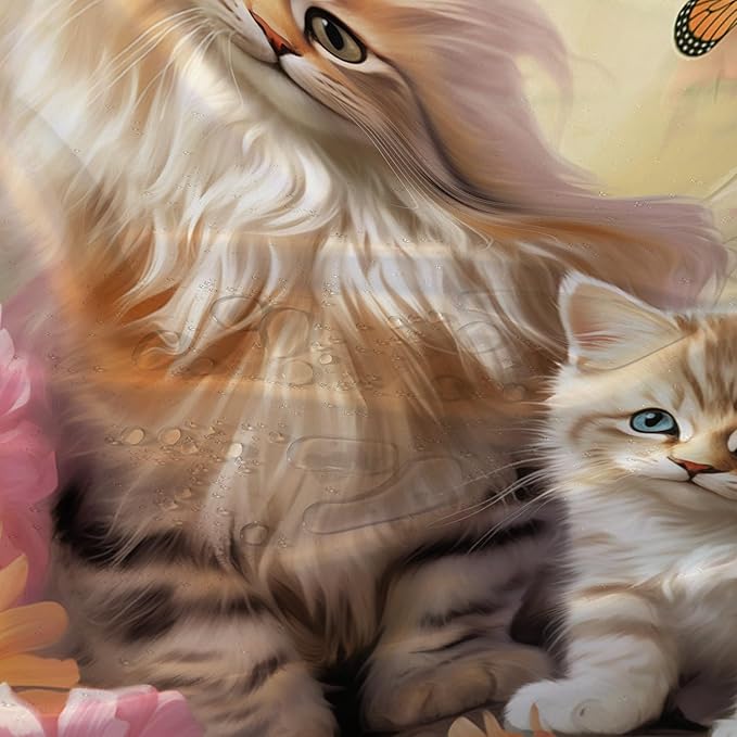 AILONEN Cartoon Kawaii Cat Shower Curtain for Kids Girls, 3D Cat Mum and Son with Flower Shower Curtain for Bathroom Decor,Cat Lovers Animal Waterproof Shower Curtains Sets with Hooks,72" W*84" H