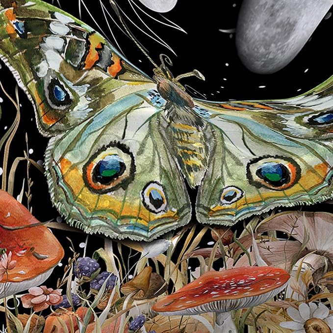 AILONEN Moth Shower Curtain,Sun and Moon Shower Curtain Set for Kids Girls Boys,Boho Natural Mushroom Plants Bath Curtain,Starry Night Bathroom Decor Shower Curtain with 12 Hooks,72" W*72" H