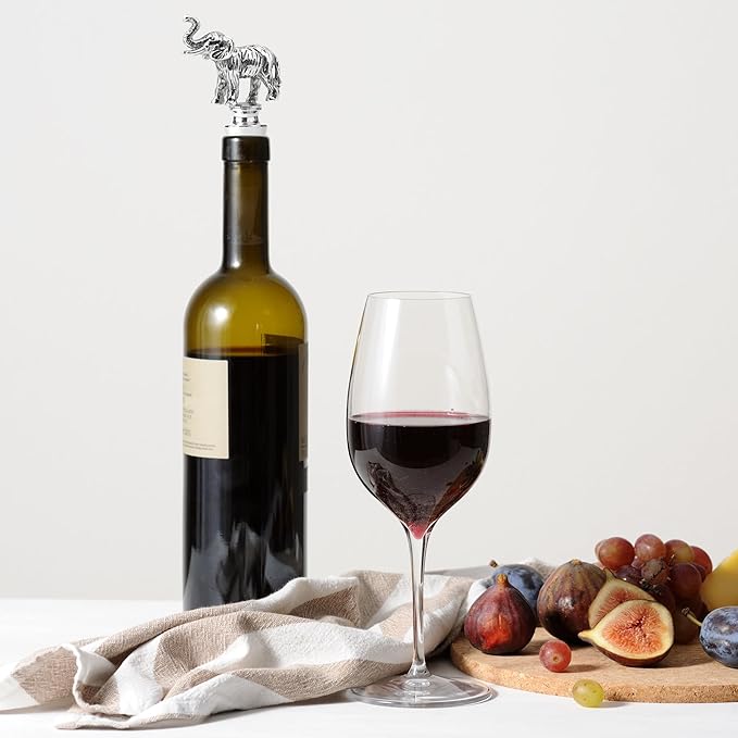 • PREMIUM MATERIALS: The fancy wine toppers stoppers are made up of zinc-alloy decor top, 304(18/8) stainless steel bottom stand, and BPA-free silicone sealing piston. We upgraded the silicone part in contact with alcohol to premium food-grade level, silicone bottle stoppers are more healthy, plus corrosion-resistant, rustproof and solid for a lifetime. The bottle opener consists of a zinc alloy decoration on the top and a 304 stainless steel handle.