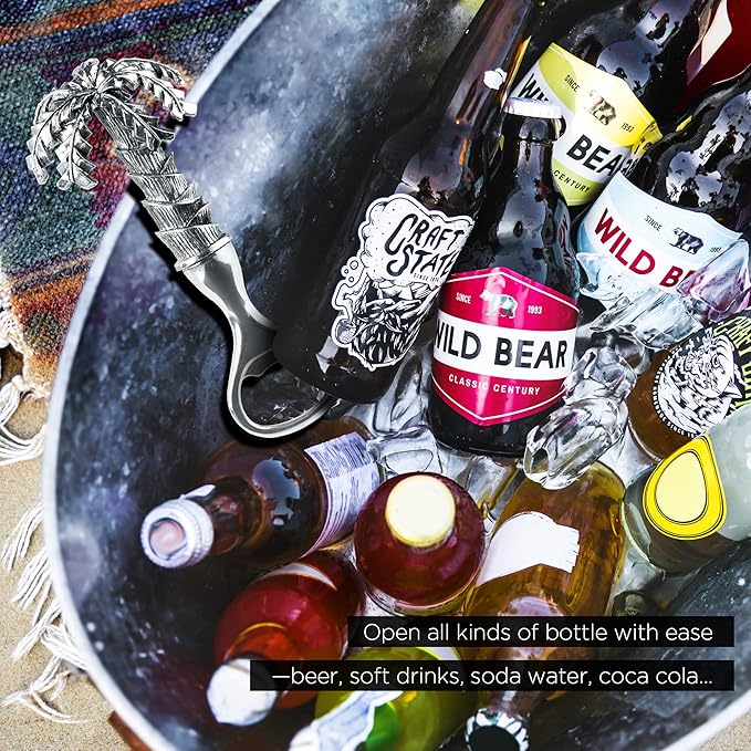• The 5" wine stopper and bottle opener set features characterized top - finely cast 3D Elephant and Palm - Trees culpture which texture is clearly visible. Bar themed home decor has become so widespread. Our wine stopper and bottle openers incorporate art into daily life, enhancing the aesthetic pleasure of your bar.