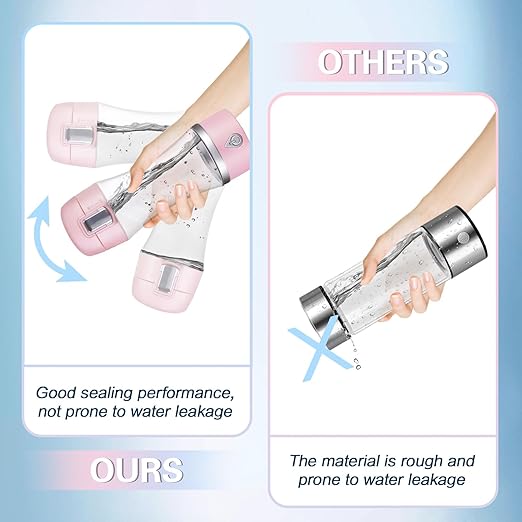• STYLISH AND ERGONOMIC DESIGN: Our hydrogen water bottle features an ergonomic curved design that is both aesthetically pleasing and easy to grip. The cup body's contoured shape facilitates a comfortable hold. A soft EVE pad is fitted at the bottom of the hydrogen water maker for added stability and slip-resistance.