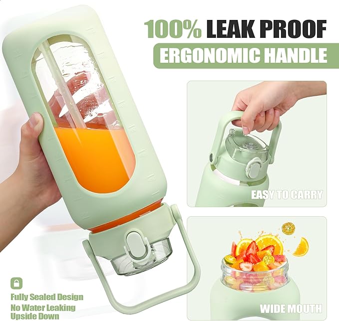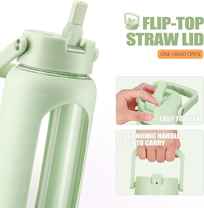 • TWO LIDS DESIGN: Our motivational glass water bottle boasts 2 lids, a flip lid and a spout lid, to meet your various needs of drinking on different occasions and making you get 2 bottles with 1 bottle’s cost.