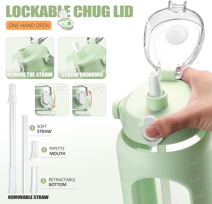 • EASY TO CLEAN: Coming with a cleaning brush makes our half gallon water bottle with straw easy to clean and wash.