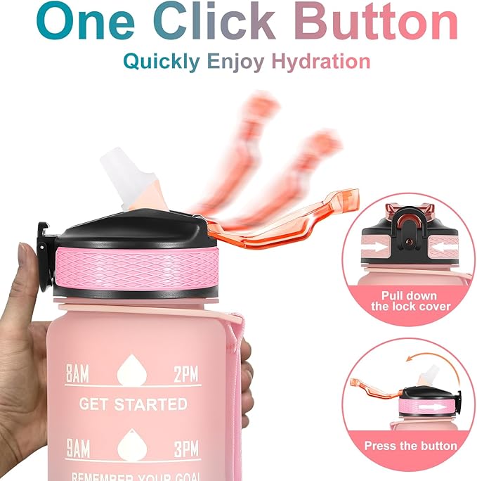 • Humanized Design: The lid adopts a pop-up design, which can be quickly opened with one hand, and is equipped with a secure lock to prevent dust and leakage; The bottle body is made of frosted material, which helps you prevent slipping during use; The water bottle come with a detachable straw, it can prevented overflow when drinking water; The wide mouth ensures you to add ice and fruits to replenish enough moisture.