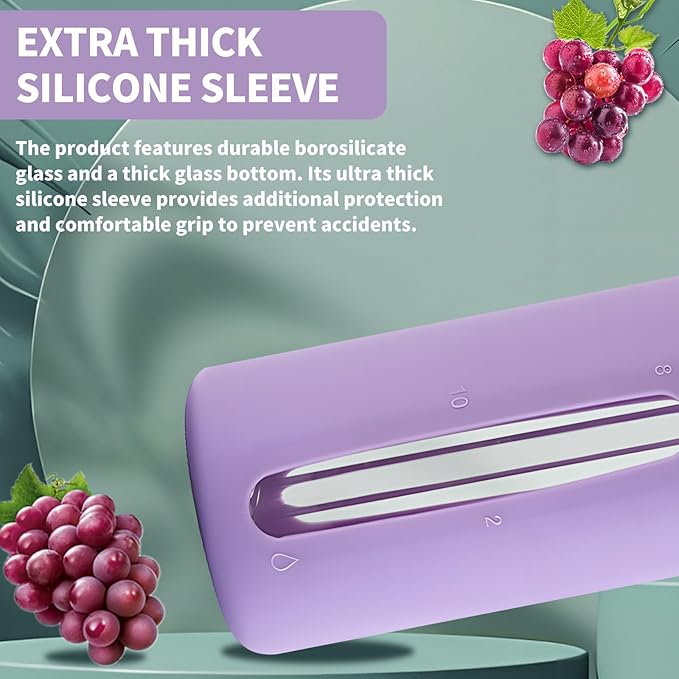• Material:Made of high-quality glass material, the water bottle is thickened silicone sleeve package, not easy to bump, box class there are two different lids, one can be inserted into the straw, a sealed with a handle can be put in the bag to carry.