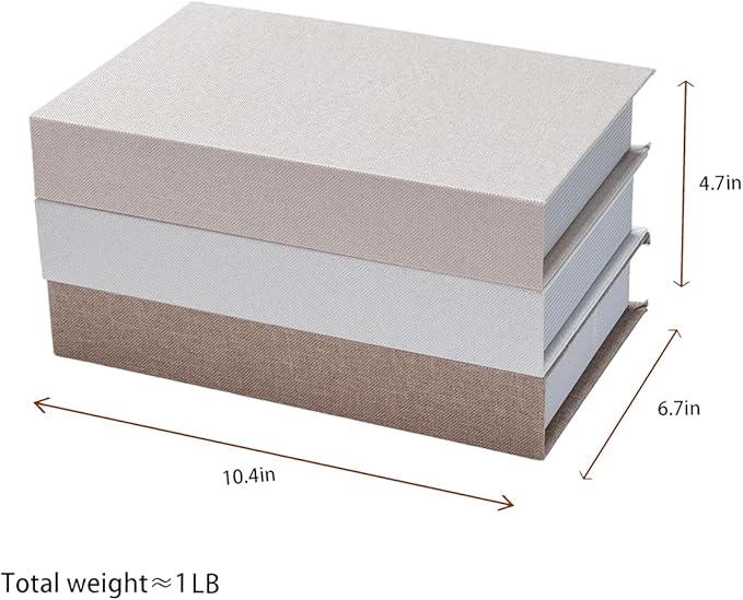 • 【Decoration function】These aesthetic faux books for decoration can add a lot of content to any home or office decoration. They can be used to add a touch of elegance to bookshelves, coffee tables or mantelpieces. The attention to detail in these book props is remarkable and very similar in every respect to a real book.