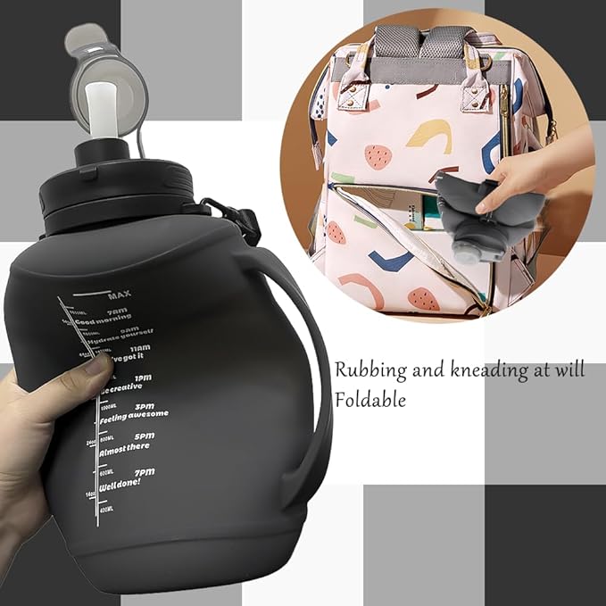 64oz Foldable Silicone Water Cups with Straw, BPA Free, for Outdoor Sports Water Bottle (Black)