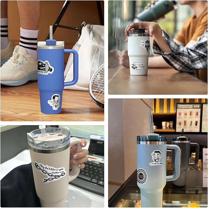 • Measuring approximately 1.2 - 2.7 inches, these stickers are easy to apply to tumblers, journals, notebook, laptop, luggage, skateboard, graffiti, guitars, etc