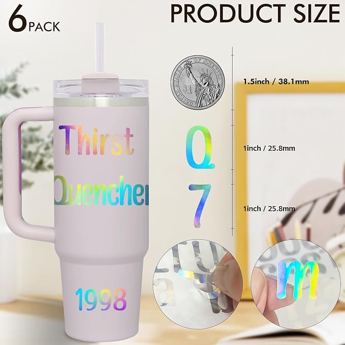 • Perfect Fit for Stanley Cups: These shiny stickers are designed to perfectly fit your cups, crafts, phone, laptop, skateboards, cars, etc. Contains 6 sticker sheets with 3 different styles of shiny letters, each letters approximately 1 inch