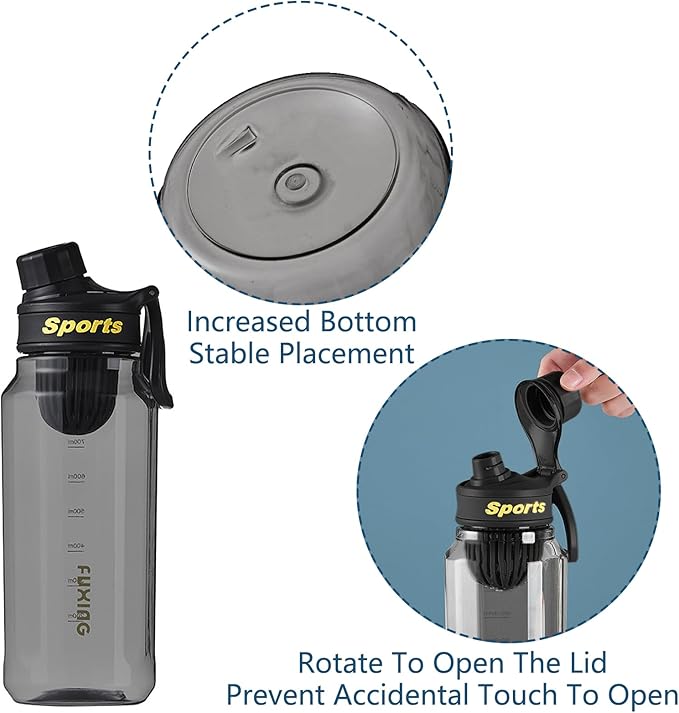 • Leak Proof: Our plastic water bottles come with a safety lid, and the lid with silicone seal ensuring no leak while carrying it in your bag. Making it a perfect outdoor sports water bottle, hiking and bike water bottle.