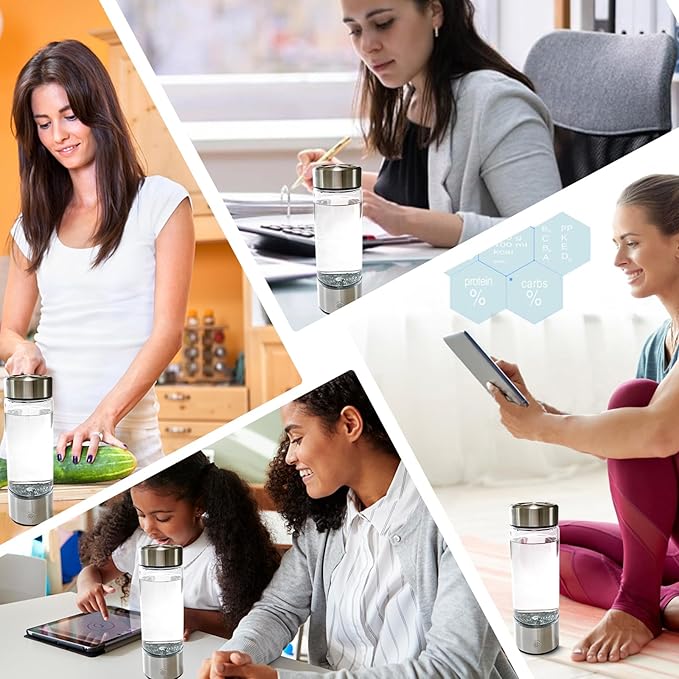 • 【Excellent quality】Our hydrogen water bottles are made of high-grade borosilicate glass,while the lid and base inside are made of food grade materials,so use it with confidence