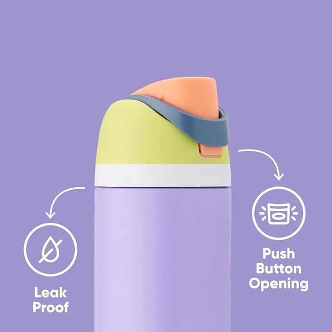 • LEAKPROOF LID: The twist-on sippy cup style lid features a carry loop, leakproof straw cap, and flip-up drinking spout for mess-free sipping on the go.