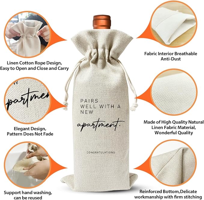 • OCCASIONS: This best gifts for housewarming wine bag can be a perfect gift for housewarmings, Thanksgiving, Christmas. Can be party decorations for women men, house accessories for home, house warming decoration party, decorations for house, home sweet home decor, realtor supplies, sold sign for new homeowners, burlap wine bags, wine suitcase, wine bottle cover, wine tasting party supplies
