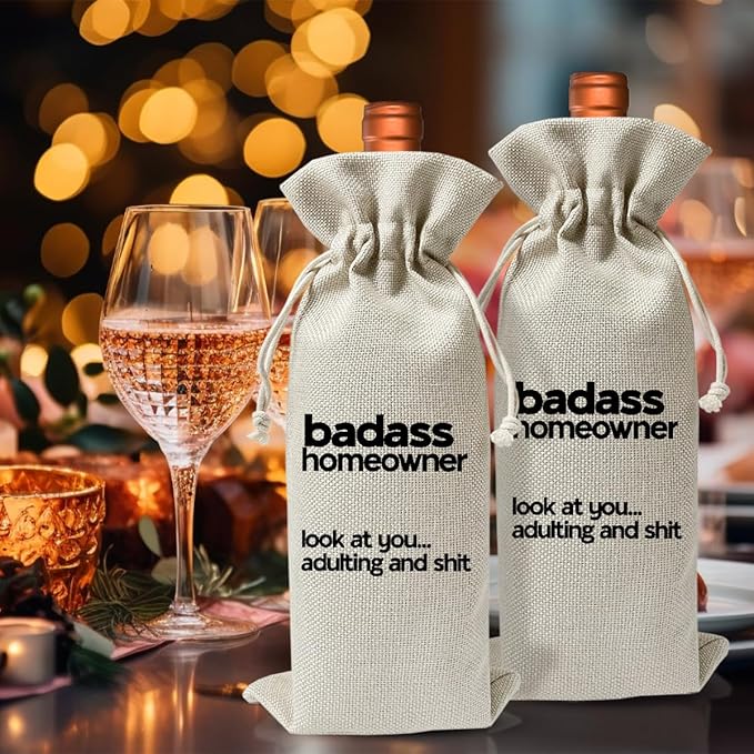 • OCCASIONS: This best gifts for housewarming wine bag can be a perfect gift for housewarmings, Thanksgiving, Christmas. Can be party decorations for women men, house accessories for home, house warming decoration party, decorations for house, home sweet home decor, realtor supplies, sold sign for new homeowners, burlap wine bags, wine suitcase, wine bottle cover, wine tasting party supplies