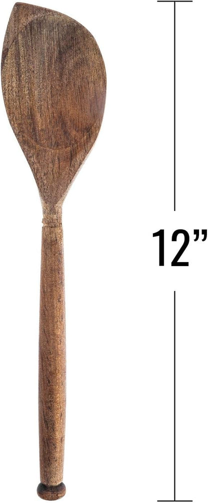 Labrea Life and Home 1pc Solid Acacia Wood Corner Spoon Kitchen Utensils Cooking Baking Home Essentials 12 Inch