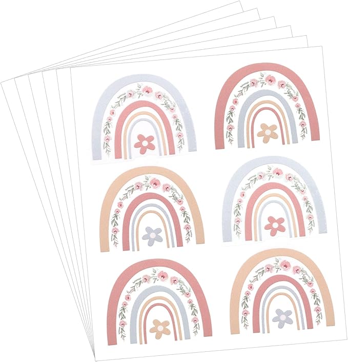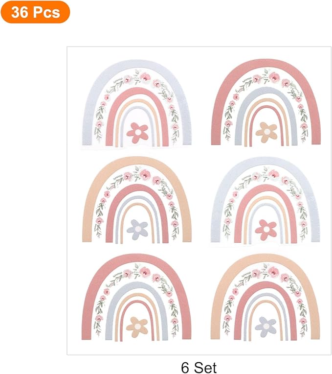 • Color: Multicolor; Material: PVC; Sticker Size: Rainbow: 5.5 x 7cm / 2.2 x 2.8inch(L x W); Packing Content: 6 Sheet x Wall Sticker ( include 36 Pcs)
