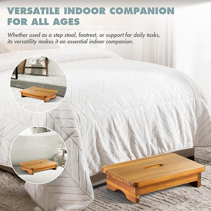 • 🧼 EASY TO CLEAN AND MAINTAIN: Crafted from high-quality Acacia wood, our step stool features a smooth, sealed surface that resists stains and spills. Simply wipe it down with a damp cloth to keep it looking new. The durable finish protects against moisture and dirt, ensuring long-lasting use with minimal upkeep. This makes it a practical and convenient addition to any household.