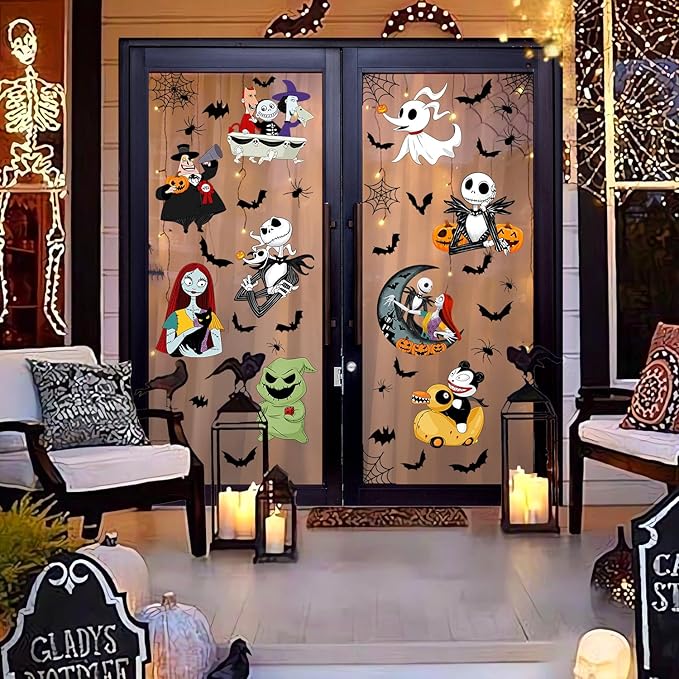 • Halloween Theme Designs: These cartoon window clings are full of Halloween elements, such as adorable cartoon character patterns, bats, spider, spiderweb and so on, with their nightmare-inspired designs, these window decorations are perfect for getting into the spirit of the season.