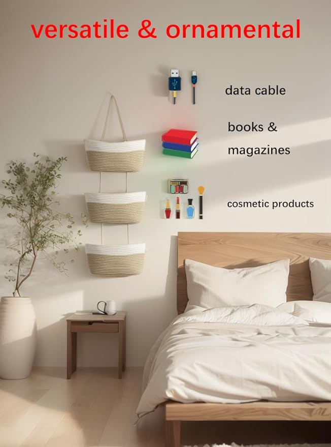 • Storage Assistant : Are you still struggling with organizing small items? This 3-layer wall organizer has a high value and can match any decorating style . Come with 1 sticky hooks ,so you can hang it behind the door or on the wall, it doesn't take up much space!