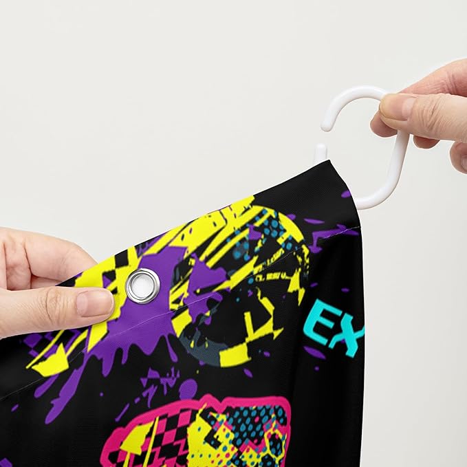 AILONEN Motocross Shower Curtain,Motorcycle Racer Bath Curtain,Extreme Sports Decoration,Colorful Graffiti Dirt Bike Shower Curtain for Kids Boys,Black Washable, 72" W x 96" H
