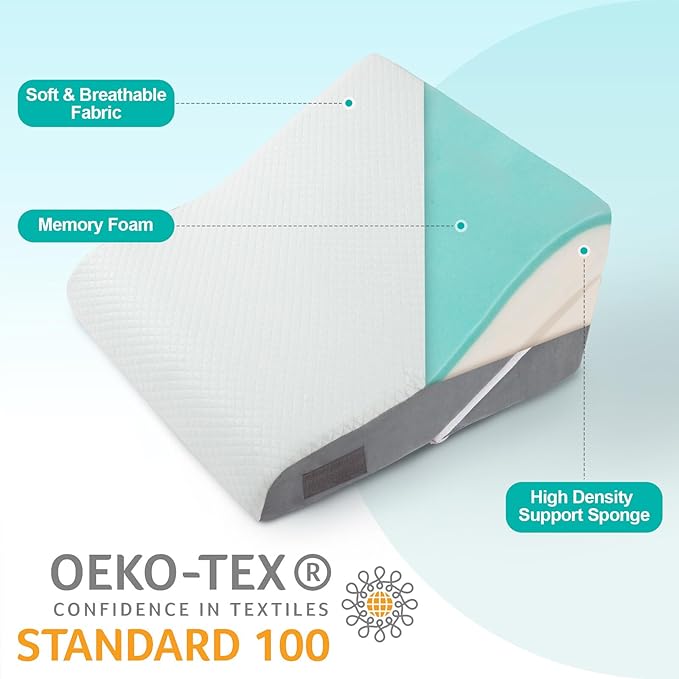 • MEMORY FOAM COMBINED WITH HIGH-DENSITY SPONGE: The wedge pillow adopts a combination of memory foam and high-density sponge, which can not only fit your body curves, provide excellent comfort and pressure relief, but also maintain sufficient support to prevent collapse.