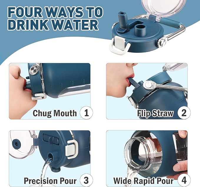• MULTIFUNCTIONAL USE -With 84oz large capacity drinking bottle, you can achieve your daily drinking goals easily! It is suitable for outdoor sports, office work or family sharings and other occasions.Not only a must-have treasure for home travel, but also a perfect gift for school, birthdays, Thanksgiving and Christmas, to value the health of your family and friends.