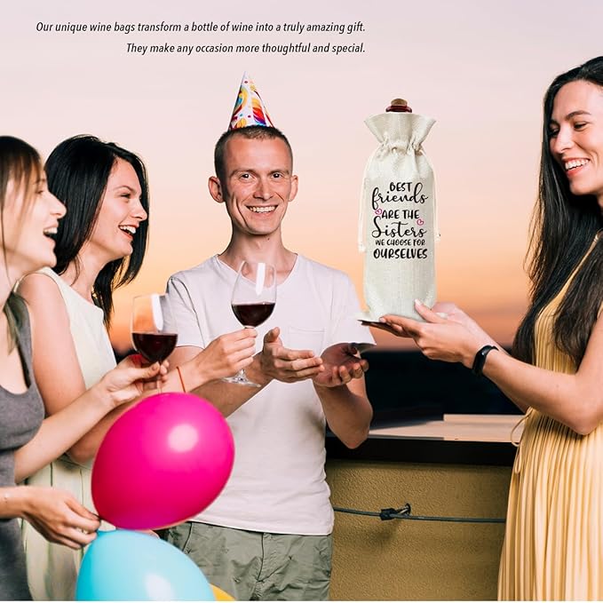 Burlap Wine Bags Gift for Woman Friend Bestie BFF, Reusable Wine Gift Bags with Drawstrings for Wedding Birthday Housewarming Thanksgiving Christmas Appreciation Party Home Storage - 07