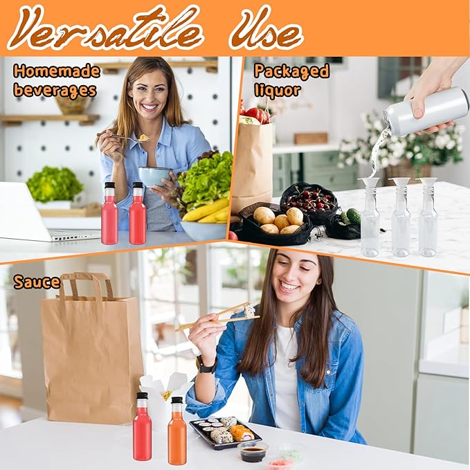 • 【Good Sealing】:Each plastic alcohol bottle has a black screw cap.When tightened appropriately,it will fit perfectly with the bottle,forming a good seal.This ensures that the food or liquid in the bottle does not leak and dirty your clothes or bags.