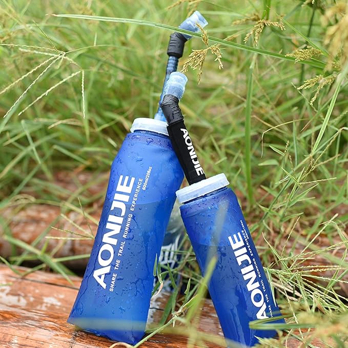 • ๐Ÿ‘ EASY POUR & DRINK: With wide neck design, itโ€™s convenient to pour water into the soft flask water bottle. When you want to drink water, just nibble the groove of the valve or use a straw directly without taking your running backpack off or stopping your running steps