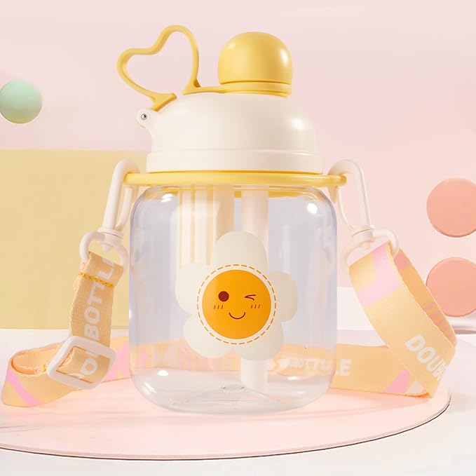 27oz Toddler Water Bottle, Tritan Sports Water Bottle with Straw, Plastic Water Bottle with Soft Strap, Kids Water Bottle for School, Includes Fruit Infuser Strainer, Leak-Proof, BPA Free, Yellow