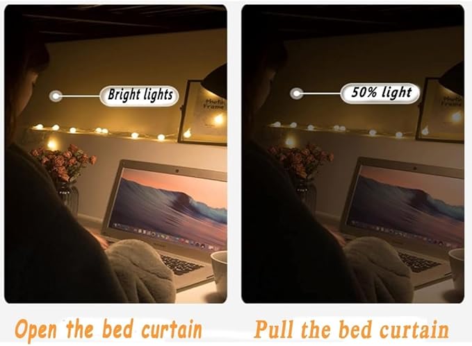 • 🌛Easy to install: The ropes need to be fixed on the frame of the bunk bed, and the plastic rings hung on the rope and link the edge of the curtain. Ideal for single bed, loft bed, dorm room bed, students dormitory bunk bed, baby bed, cute bed canopy etc.