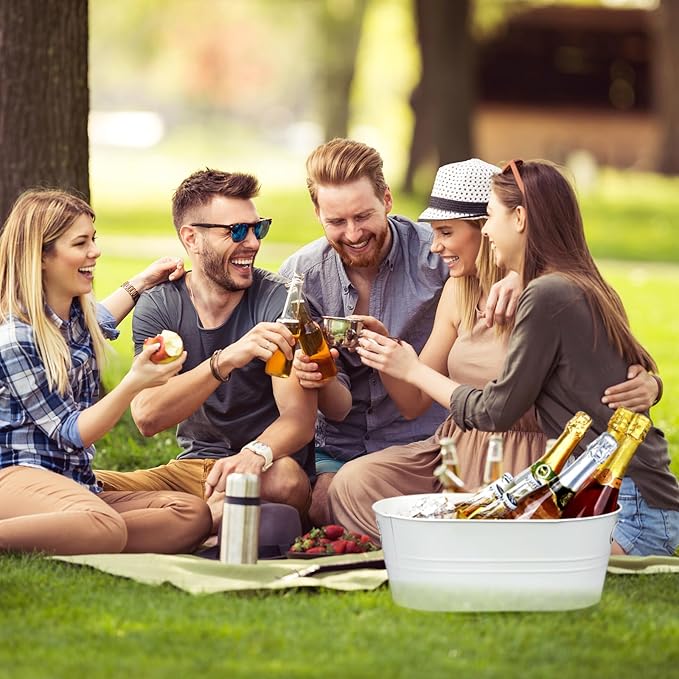 • 【MULTI SCENARIO APPLICATION】- The beverage tub is a versatile accessory that can be used in a variety of settings. Whether you're camping in the great outdoors, having a picnic with family, or hosting a formal dinner party, the metal tub can fit in seamlessly.
