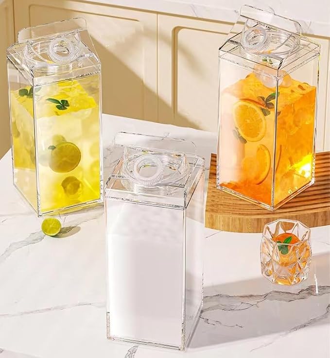 • 【Package Included】You will get 2 pieces of clear milk carton water bottles, coming in transparent style, well matching with different colors of drinks, abundant quantity to use, replace and share with families or friends.