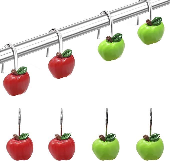 Shower Curtain Hooks, Resin Hooks, Bathroom Shower Rod Decoration Set, 12 Pieces