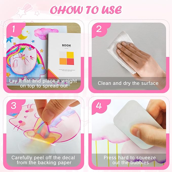 • 【Beautiful Pattern Designs】You will receive two watercolor-style wall stickers, each measuring 11.81 x 35.43 inches/ 90 x 30 cm. It contains a rainbow, a unicorn, a moon, cats, stars, hearts, and many other vivid and lovely suitable home decoration patterns in sufficient quantity.