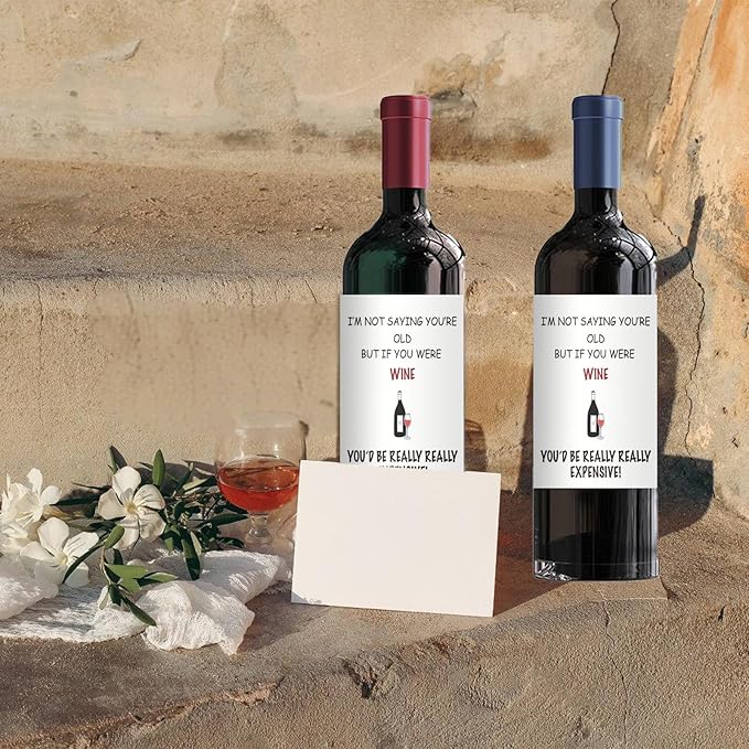 • Easy to Use Wine Bottle Labels - Simply peel off the backing and stick these labels onto your favorite bottle of wine. Remove the original label for the best results. Follow these simple instructions: Starting from the left edge, roll the label to the opposite edge and press down to smooth for a professional look.