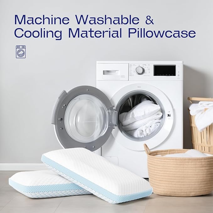 • <Machine Washable Cover> The memory foam contour pillow provides soothing support for the neck and body. The soft, comfortable, and breathable pillowcase ensures maximum airflow, improving comfort and sleep quality. The ergonomic pillows for sleeping compacts with a smooth zipper, it is removable and machine washable.