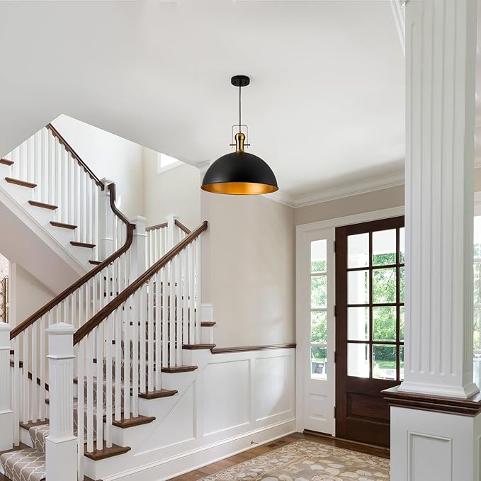 • [Industrial & Vintage Design]: 3-Light industrial farmhouse pendant light fixtures with adjustable cord, mattle black finish featuring retro-style dome shade, this antique pendant lighting is made of sturdy metal construction in black finish and inner gold finish.The vintage pendant lights is ideal for home, dining room, kitchen island, warehouse, entryway, corridor, restaurant, cafe, bar, club, barn, working bench.