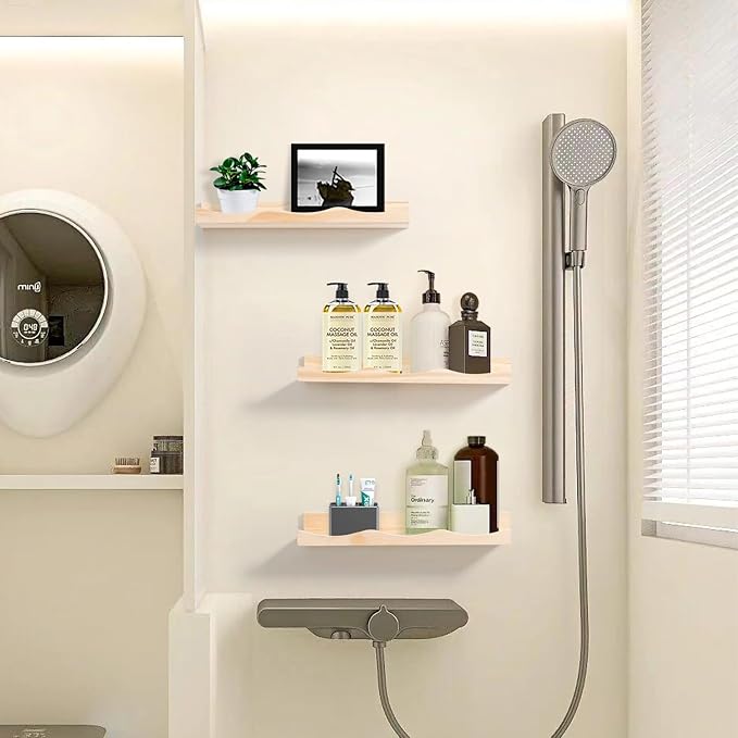 • Floating Wall Mount Durability:Each bookshelf is handcrafted with natural pine wood, resulting in unique variations and slight differences in appearance. This adds to the charm and character of the product, making each piece one-of-a-kind,allowing it to hold numerous pictures and items without deformation or damage,their size (15.7×4.5×2inches).