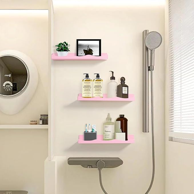 AZSKY Floating Bookshelf for Kids, Picture Ledge Shelf for Wall Decor and Storage 16 Inches Nursery Book Shelves Set 3, Baby Book Shelf for Kids Room Decor(Pink)