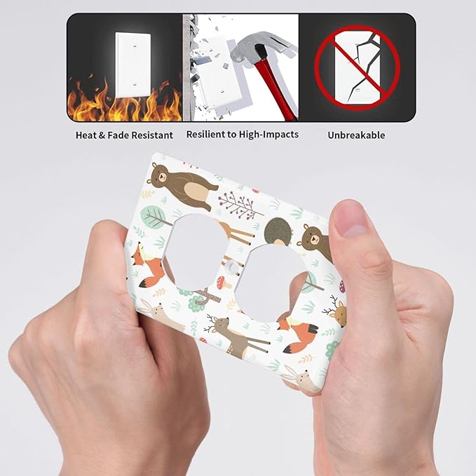 Cartoon Animal Deer Bear Fox Light Switch Cover Decorative Duplex Electrical Outlet Plastic Wall Plate Outlet Cover for Women Girls Bedroom Kitchen Living Room Decor 4.5 * 2.76